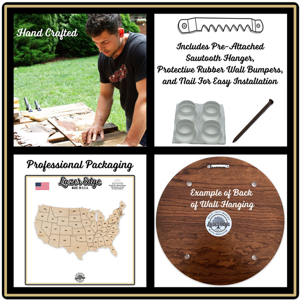 We attach a metal hanger to the back of each wall hanging and include a nail for a secure hanging experience! Adhesive bumpers are also included to stick on the back of the wall hanging that provide additional stability, add dimension to your art, and protect your wall from accidental damage.